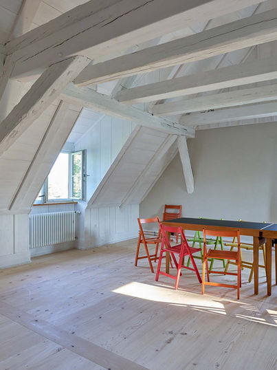 Auf 3 Stockwerken verteilt befinden sich insgesamt 5 Schlafzimmer mit 12 Betten. Diese sind aufgeteilt in 4 Schlafzimmer mit je 2 Betten, die als Doppel- oder Einzelbetten genutzt werden können. Sowie einem 5. Schlafzimmer mit zwei kleineren Stockbetten, die weiteren Platz für bis zu 4 Personen bieten. Im Erdgeschoß befindet sich des Weiteren ein gemütliches Wohnzimmer mit Kamin, ein Esszimmer mit langer Eckbank zum gemütlichen gemeinsamen Essen und eine große Wohnküche mit einem weiteren Esstisch. Sie ist voll ausgestattet. Im Nebenraum befindet sich eine Waschmaschine, ein Trockner, sowie Putzuntensilien.